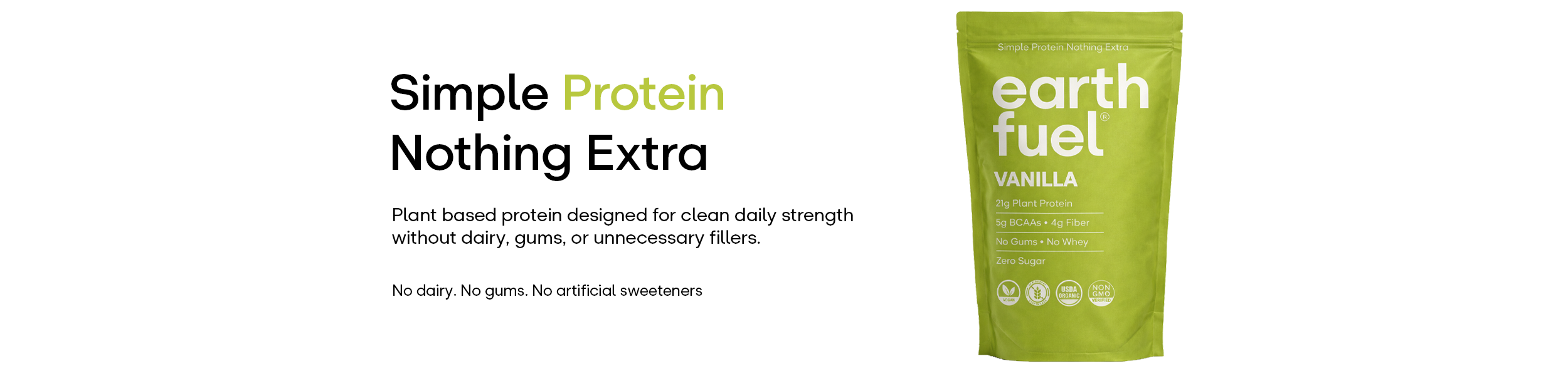 100 percent plant based — No gums — No fillers — No whey — Gentle on the stomach — Lab tested — Zero artificial sweeteners —